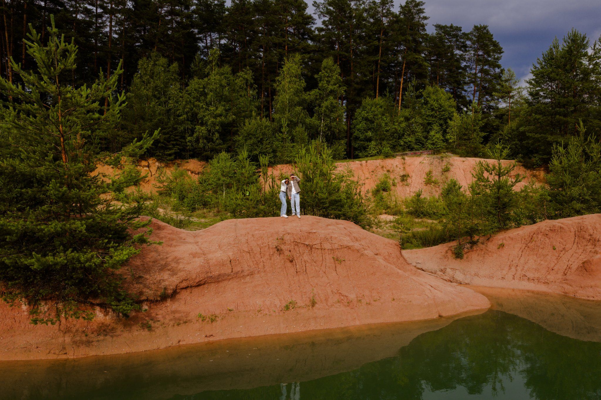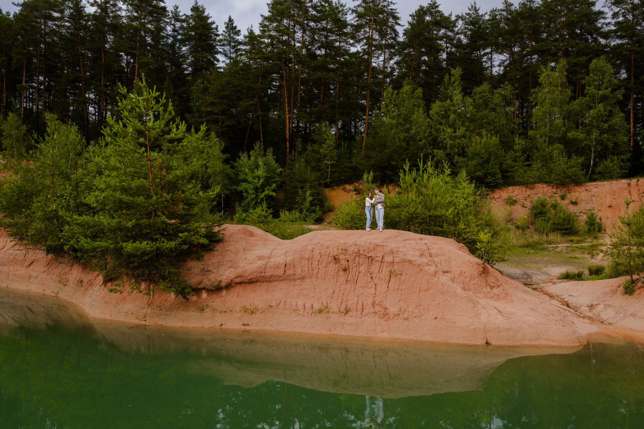 Ein stimmungsvolles Outdoor-Shooting in einer einzigartigen Naturkulisse. Die Kombination aus Bodenaufnahmen und beeindruckenden Drohnenperspektiven fängt die besondere Atmosphäre und die Verbindung zwischen den beiden perfekt ein.